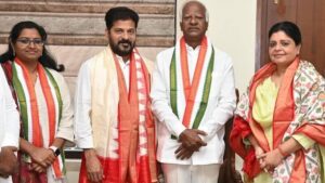 ತೆಲಂಗಾಣದಲ್ಲಿ ಫೋನ್ ಕದ್ದಾಲಿಕೆ ವಿವಾದದ ಮಧ್ಯೆ ಚುನಾವಣಾ ಸ್ಪರ್ಧೆಯಿಂದ ಹಿಂದೆ ಸರಿದಿದ್ದ ಭಾರತ್ ರಾಷ್ಟ್ರ ಸಮಿತಿ (ಬಿಆರ್ ಎಸ್) ಶಾಸಕ ಕಡಿಯಂ ಶ್ರೀಹರಿ ಮತ್ತು ಅವರ ಮಗಳು ವಾರಂಗಲ್ನ ಪಕ್ಷದ ಲೋಕಸಭಾ ಅಭ್ಯರ್ಥಿ ಕಾವ್ಯಾ ಕಡಿಯಂ ಅವರು ರಾಷ್ಟ್ರೀಯ ಚುನಾವಣೆಗೆ ಮುಂಚಿತವಾಗಿ ಭಾನುವಾರ ರಾಜ್ಯದ ಆಡಳಿತಾರೂಢ ಕಾಂಗ್ರೆಸ್ ಗೆ ಸೇರಿದರು. ಮುಖ್...