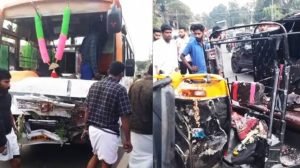 ಶಬರಿಮಲೆ ಯಾತ್ರಾರ್ಥಿಗಳನ್ನು ಕರೆದೊಯ್ಯುತ್ತಿದ್ದ ಟೆಂಪೋ ಟ್ರಾವೆಲರ್ ಗೆ ಆಟೋ ರಿಕ್ಷಾ ಡಿಕ್ಕಿ ಹೊಡೆದ ಪರಿಣಾಮ ಇಬ್ಬರು ಮಕ್ಕಳು ಸೇರಿದಂತೆ ಐವರು ಸಾವನ್ನಪ್ಪಿದ ಘಟನೆ ಇಲ್ಲಿನ ಮಂಚೇರಿಯಲ್ಲಿ ನಡೆದಿದೆ ಎಂದು ಪೊಲೀಸರು ತಿಳಿಸಿದ್ದಾರೆ. ಆಟೋ ಚಾಲಕ ಅಬ್ದುಲ್ ಮಜೀದ್ (50), ರಿಕ್ಷಾ ಪ್ರಯಾಣಿಕರಾದ ತಸ್ಲೀಮಾ (34), ಮುಹ್ಸಿನಾ (32) ಮತ್ತು ಅ...