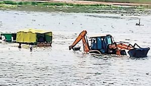 ಗದಗ/ವಿಜಯನಗರ: ಶಾರ್ಟ್ಕಟ್ (ಅಡ್ಡದಾರಿ) ಮೂಲಕ ನದಿ ದಾಟಲು ಹೋಗಿ ಭಕ್ತರಿದ್ದ ಟ್ರ್ಯಾಕ್ಟರ್ ಒಂದು ತುಂಗಭದ್ರಾ ನದಿಯ ಮಧ್ಯದಲ್ಲಿ ಸಿಲುಕಿ ಮುಳುಗಿದ ಘಟನೆ ನಡೆದಿದೆ. ಅದೃಷ್ಟವಶಾತ್ ಸಮಯಪ್ರಜ್ಞೆ ಮೆರೆದ ಸ್ಥಳೀಯ ಮೀನುಗಾರರು ನದಿಗೆ ಜಿಗಿದು ಟ್ರ್ಯಾಕ್ಟರ್ನಲ್ಲಿದ್ದ ಎಲ್ಲಾ ಭಕ್ತರನ್ನು ಸುರಕ್ಷಿತವಾಗಿ ರಕ್ಷಿಸಿದ್ದಾರೆ. ವಿಜಯನಗರ ಜಿಲ್ಲೆ...