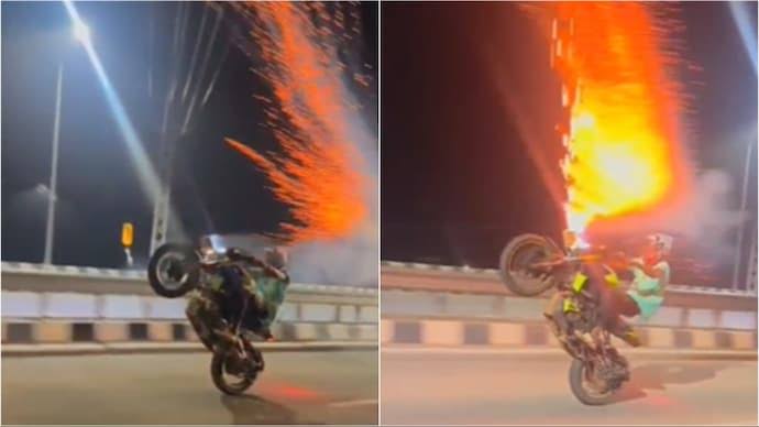 ತಮಿಳುನಾಡಿನ ತಿರುಚ್ಚಿಯಲ್ಲಿ ಪಟಾಕಿ ಸಿಡಿಸಿ ಬೈಕ್ ನಲ್ಲಿ ಸ್ಟಂಟ್ ಮಾಡಿದ್ದ ವ್ಯಕ್ತಿಯನ್ನು ಬಂಧಿಸಲಾಗಿದೆ. ಈ ಬೈಕ್ ಸ್ಟಂಟ್ ನ ವೀಡಿಯೊ ಸಾಮಾಜಿಕ ಮಾಧ್ಯಮದಲ್ಲಿ ವೈರಲ್ ಆಗಿದೆ. ಈ ವೀಡಿಯೊದಲ್ಲಿ, ವ್ಯಕ್ತಿಯು ತನ್ನ ಬೈಕಿಗೆ ಪಟಾಕಿಗಳನ್ನು ಜೋಡಿಸಿ, ನಂತರ ರಸ್ತೆಯಲ್ಲಿ ವ್ಹೀಲ್ ಮಾಡುವಾಗ ಅವುಗಳಿಗೆ ಬೆಂಕಿ ಹಚ್ಚುವುದನ್ನು ಕಾಣಬಹುದು.