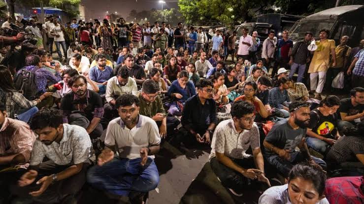 ನಗರದ ದಕ್ಷಿಣ ಭಾಗದಲ್ಲಿರುವ ಎಸ್ಎಸ್ಕೆಎಂ ಆಸ್ಪತ್ರೆಯಿಂದ ಎಸ್ಪ್ಲನೇಡ್ ಗೆ ಶುಕ್ರವಾರ ನಡೆದ ರ್ಯಾಲಿಯಲ್ಲಿ ಪೊಲೀಸರು ಲಾಠಿ ಪ್ರಹಾರ ನಡೆಸಿದ್ದಾರೆ ಎಂದು ಆರೋಪಿಸಿ ಕೆಲವರು ಒಂದು ಕೈಯಲ್ಲಿ ಛತ್ರಿಗಳೊಂದಿಗೆ ನಿಂತಿದ್ದರೆ, ಇತರರು ಈ ಪ್ರದೇಶದ ಡೊರಿನಾ ಕ್ರಾಸಿಂಗ್ನಲ್ಲಿ ತಾತ್ಕಾಲಿಕ ಪ್ಲಾಸ್ಟಿಕ್ ನೆರಳಿನಲ್ಲಿ ಆಶ್ರಯ ಪಡೆದು ಪ್ರತಿಭಟನೆ ಮಾಡಿದರು.
